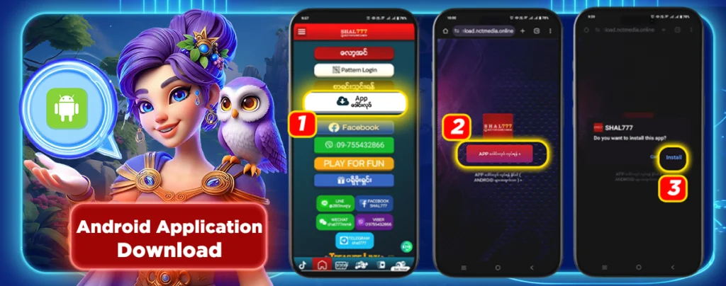 ဒေါင်းလုပ်လုပ်ရန်လိုအပ်သူများအတွက် Android Application Download and IOS Application Download နှစ်မျိုးနှစ်စားခွဲခြားထားပါသည်။